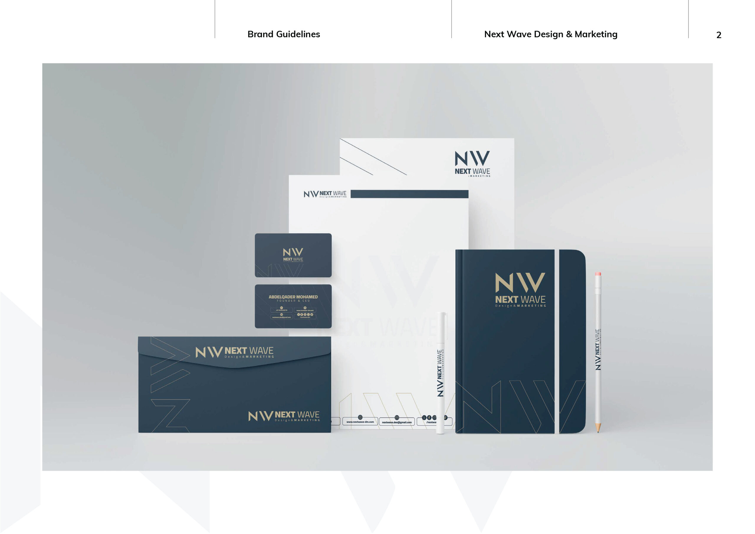 This branding project for NEXT WAVE establishes a modern and dynamic visual identity built to reflect a forward-looking brand ethos. The design blends bold typography, a streamlined colour palette and confident graphic elements to communicate clarity, movement and contemporary relevance. Across applications—from logo and stationery to digital assets and environmental graphics—the identity maintains coherence through consistent visual rules while adapting flexibly to each format. The result is a brand system that feels structured, but alive with energy and scalability. In sum, the identity positions NEXT WAVE as both purposeful and progressive—a brand ready to lead and evolve in a changing creative landscape.